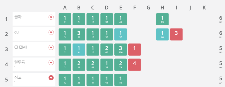 대회 중간 5등이라는 성적이 신기해서 캡처했다.