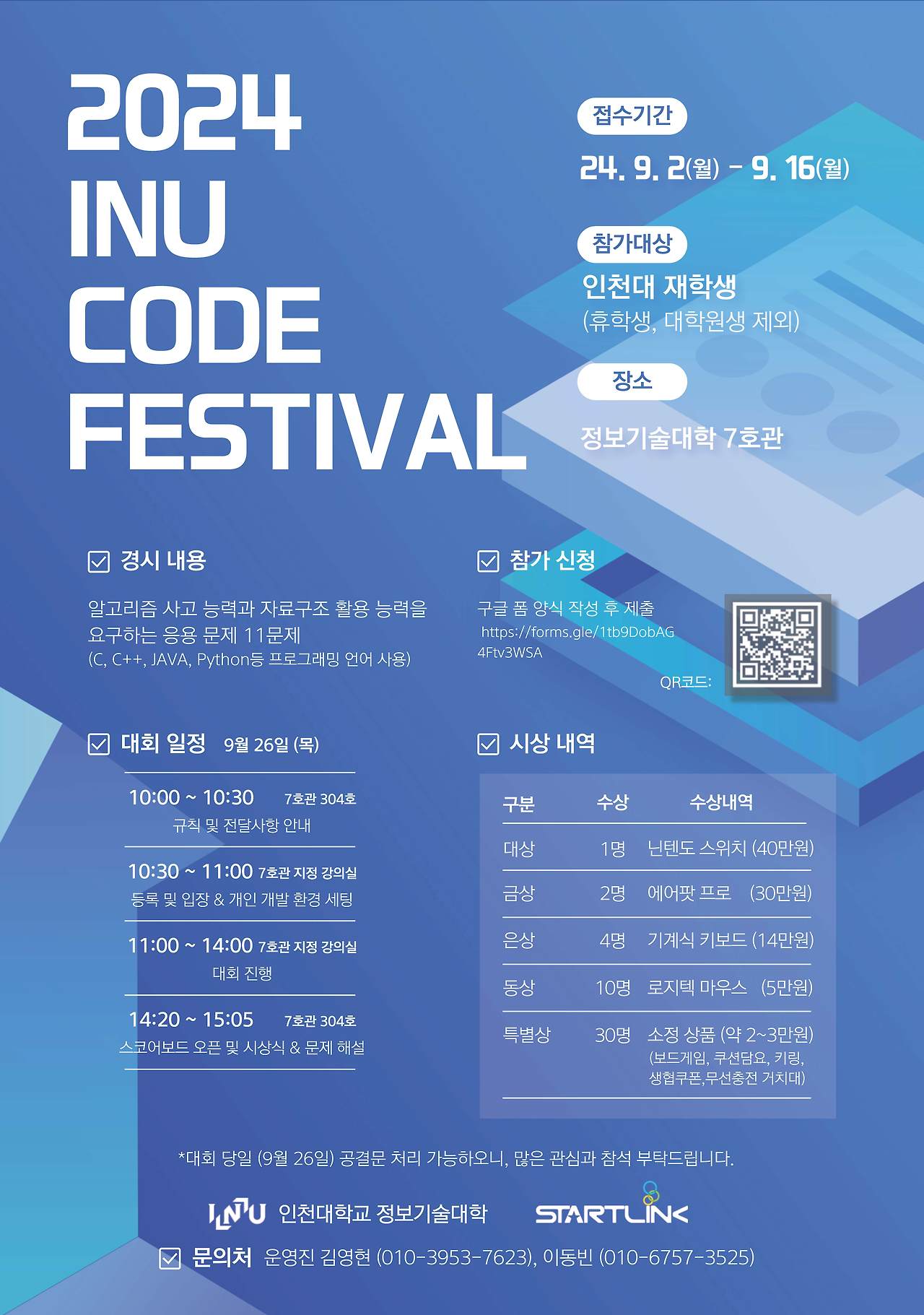 생애 첫 상품을 타게 되었던 대회인 2024 INU CODE FESTIVAL 참가 후기에 대해 소개하려고 한다.