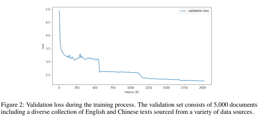 이러한 접근법의 효과를 검증하기 위해 훈련 과정에서 검증 세트의 손실 변화를 모니터링했다. 그 결과, 훈련 데이터 분포가 변경되는 시점(600억 및 1,100억 토큰)에서 검증 손실이 크게 감소하였으며, 이는 모델이 데이터의 다양성에 적응하고 있음을 나타낸다.